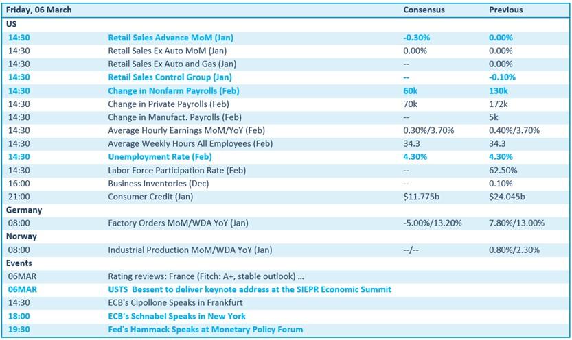 Voor de rest is de kalender erg mager. Duitsland geeft inzicht in de fabrieksbestellingen voor januari, een indicator die vaak wordt gezien als een vroege graadmeter van industriële dynamiek. En Noorwegen trakteert op industriële productiedata voor januari.
