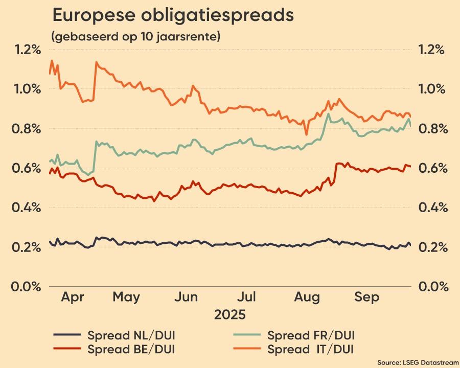 In Europa is het dan weer afwachten om te zien of de Franse president Macron een premier kan benoemen die het langer dan een paar dagen volhoudt in de zoektocht naar een begrotingsakkoord. Feit is alleszins dat de obligatiemarkten zich relatief kalm houden in deze politieke storm, terwijl een scenario van nieuwe verkiezingen bepaald niet zonder risico is. De risicopremies en de spreads zijn immers allerminst in beton vastgeklonken, en ook de euro zou dan in het vizier kunnen genomen worden. Afwachten is de boodschap, en dat proces verloopt gelukkig vredig: het verschil tussen de rente in Frankrijk en Duisland normaliseerde gisteren zowaar weer wat.