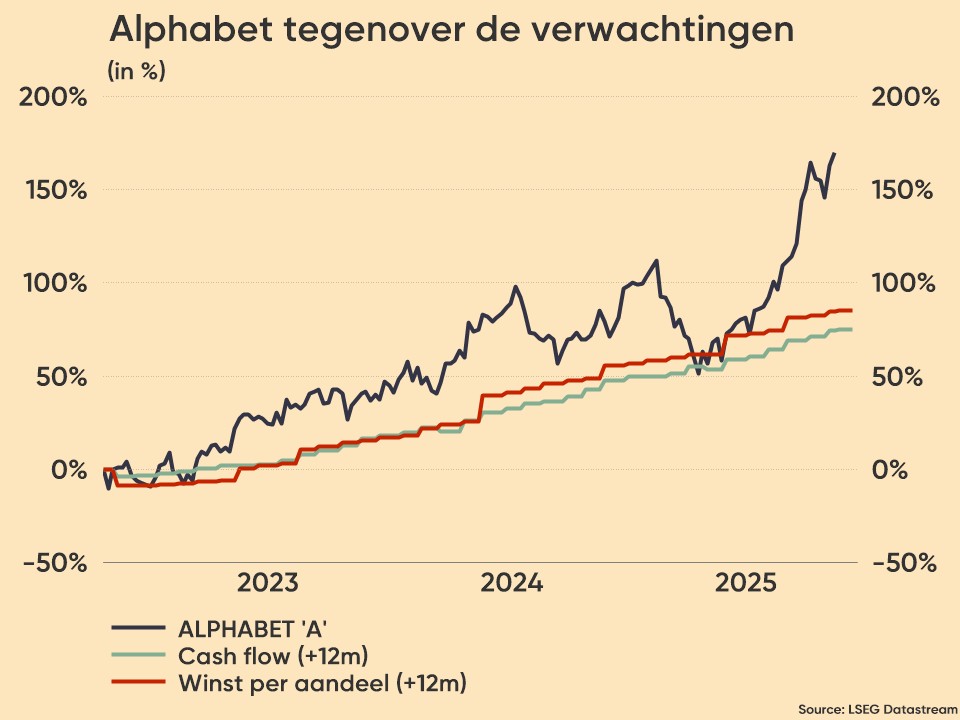 Alphabet behoeft eigenlijk geen introductie: het bedrijf heeft 6 apps met meer dan 2 miljard gebruikers en 15 diensten met meer dan 500 miljoen gebruikers. Sinds 2016 is Alphabet een AI-first bedrijf. Hét grote competitieve voordeel op het vlak van Generatieve AI zit in de data die men het AI-model kan voeden om het te trainen. Google heeft veruit de grootste set zoekdata, maar ook de data die zijn verzameld via hun webbrowser Chrome en mobiele besturingssysteem Android geven hen een veel grotere dataset om hun modellen op te trainen. Pijnpunt bij Alphabet is de hoge kostenstructuur. Maar hier ligt ook de opportuniteit. In de aanwervingspolitiek zien wij tekenen van een grotere focus op een efficiëntere kostenbasis. Dit moet de marges ten goede komen. Sinds kort keert het bedrijf een (weliswaar bescheiden) dividend uit.