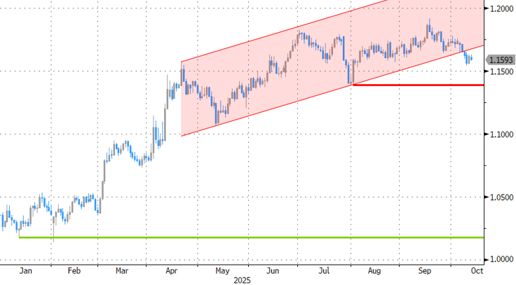 Het is voor EUR/USD evenwel geen springplank naar de recente toppen ten noorden van 1.18. De Franse politiek ontneemt het koppel alweer enig momentum. President Macron stelde vrijdag na sluiting de nieuwe premier voor. Lecornu volgt zichzelf op na minder dan één week. Er staat een nieuwe ploeg klaar om zo snel mogelijk een begroting voor volgend jaar door het parlement te jagen. Dat moet vandaag of morgen om alle wettelijke termijnen te respecteren. We vrezen voor het overleven van het kabinet Lecornu II. De voormalige regeringspartij Les Républicains neemt niet deel aan de huidige administratie, bezwaarlijk een signaal van vertrouwen. De uitersten van het politiek spectrum leggen al meteen een nieuwe motie van wantrouwen op tafel. De stemming volgt vermoedelijk woensdag. Het lot van de dan drie dagen oude regering ligt in de handen van de socialisten. Het risico op vervroegde parlementaire verkiezingen blijft in onze ogen hoog.