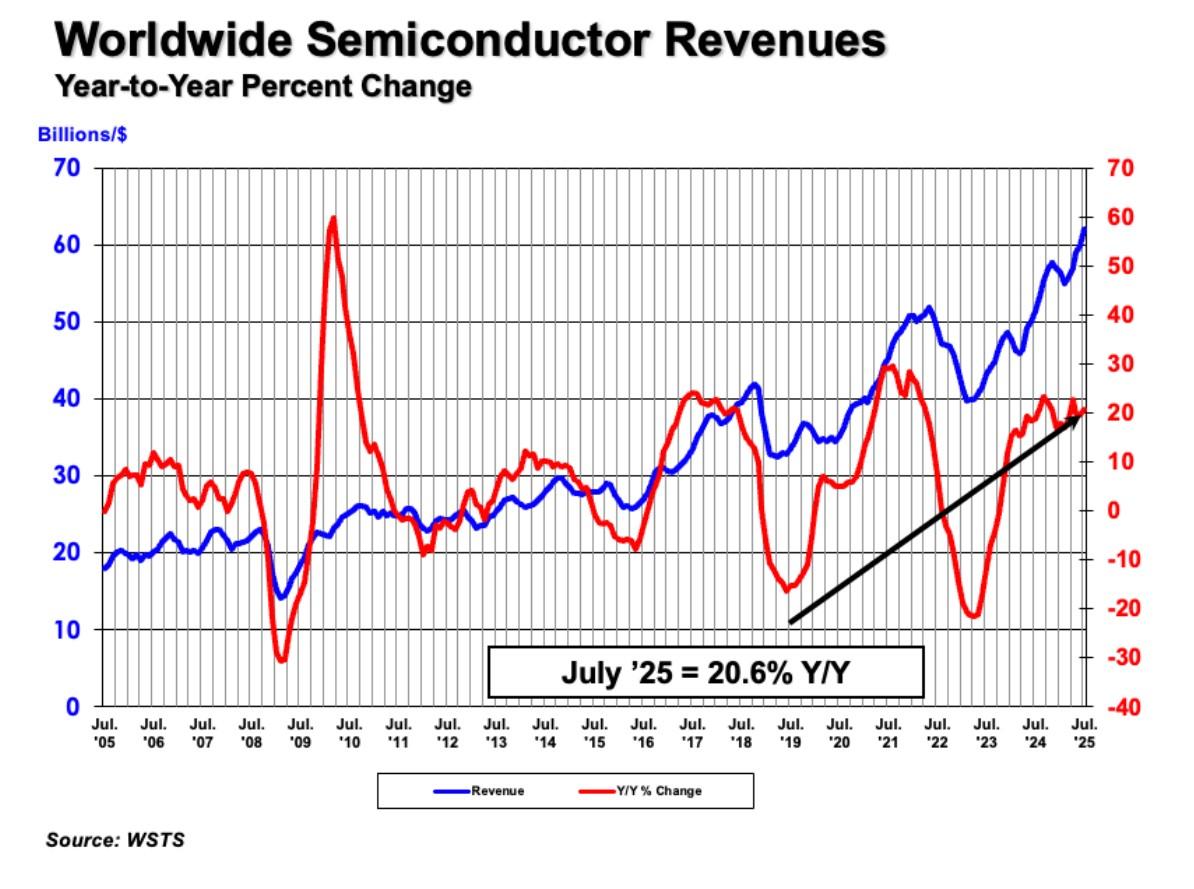 Verkoop van halfgeleiders stijgt 20,6% in juli
